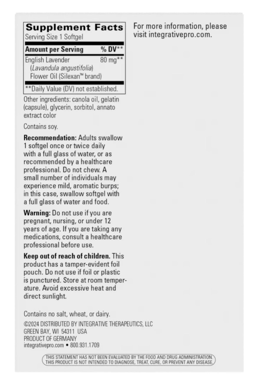 Lavela WS 1265, also known as Silexan™, is a clinically studied, non-habit-forming oral lavender essential oil (Lavendula angustifolia) that has been shown to promote relaxation, foster sleep quality in those experiencing occasional anxiety, calm nervousness, and support general mental health.* Clinical trials published in peer reviewed medical journals demonstrate Lavela 1265 as a well-tolerated option for occasional anxiety.*1,2